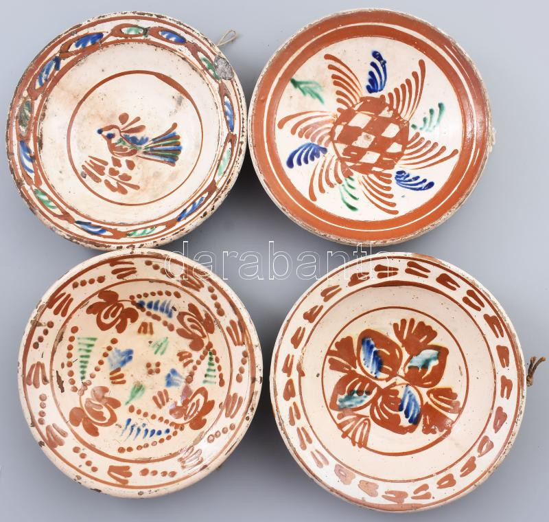 Leírás: 4 darab tál. Mezőség, cca 1900, sérüléssel, restaurálással, d: 20-22 cm