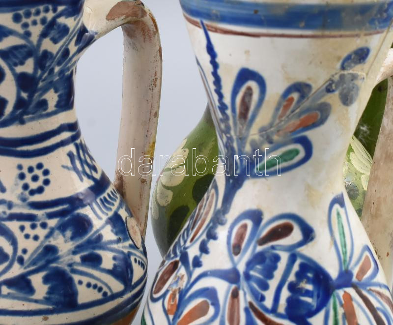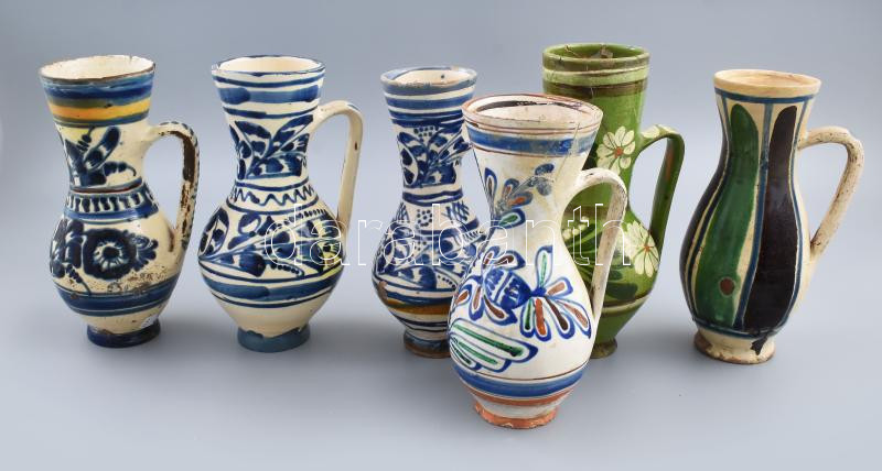 Leírás: 6 darab bokály, 19. sz., sérülésekkel, repedéssel, m: 22-24 cm