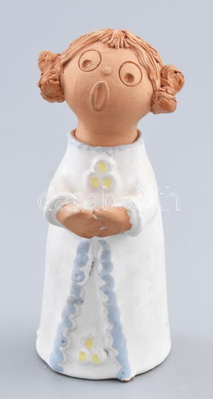 Leírás: Antalfiné Szente Katalin: Fehér ruhás éneklő lány. Jelzett, kis kopottsággal, m: 14 cm