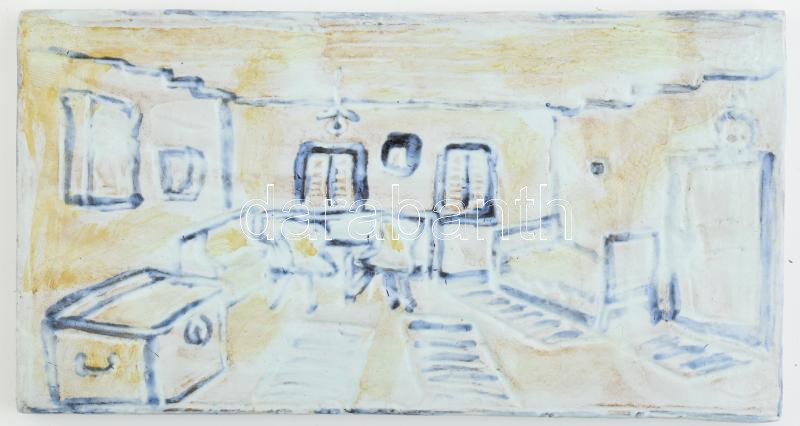 Leírás: Kerámia falikép, színes máza, AS jelzéssel, kopásokkal, 12x22 cm