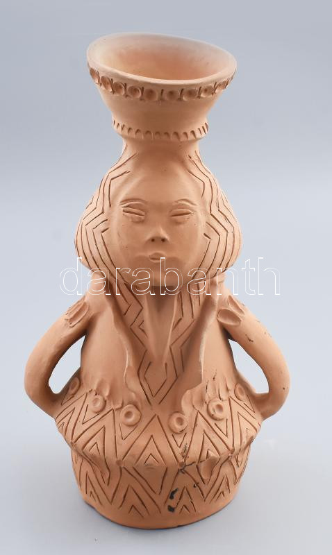 Leírás: Mákszem Irén: Női alakos figurális szálváza. Jelzett, kis kopással, m: 34 cm