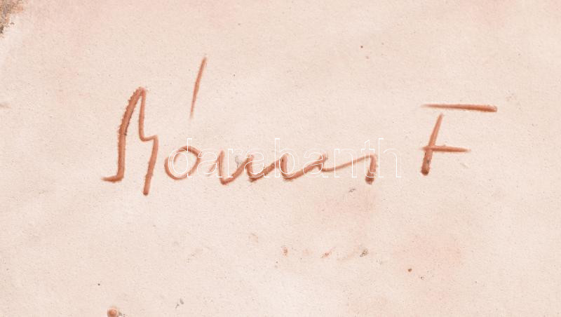 Leírás: Mónus Ferenc (1931-1999): Fedeles tárolóedény. Jelzett, sérüléssel, m: 22 cm