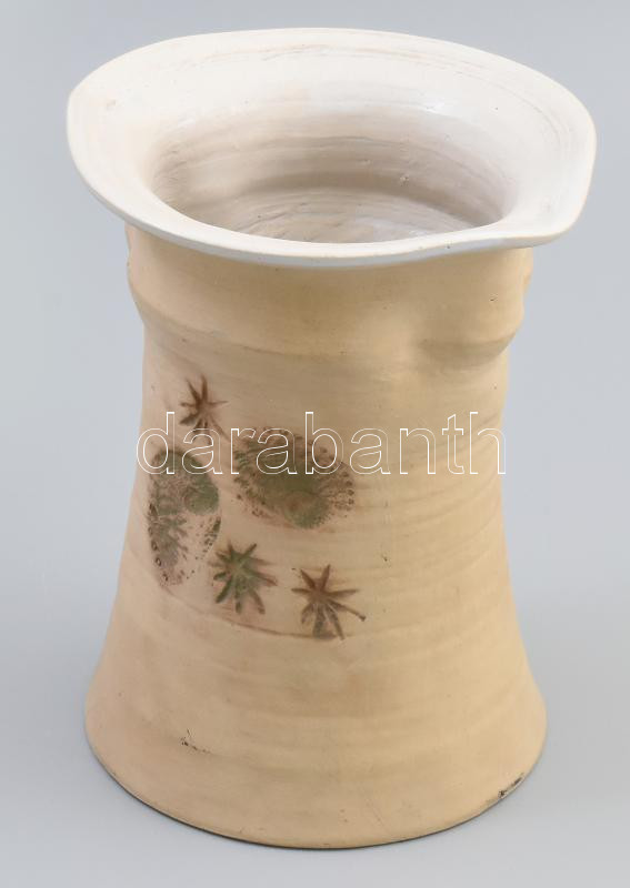 Leírás: Sövegjártó Mária (1942-): Váza tengeri mintával. Kívül mázatlan kerámia, jelzéssel, hibátlan, m: 17 cm