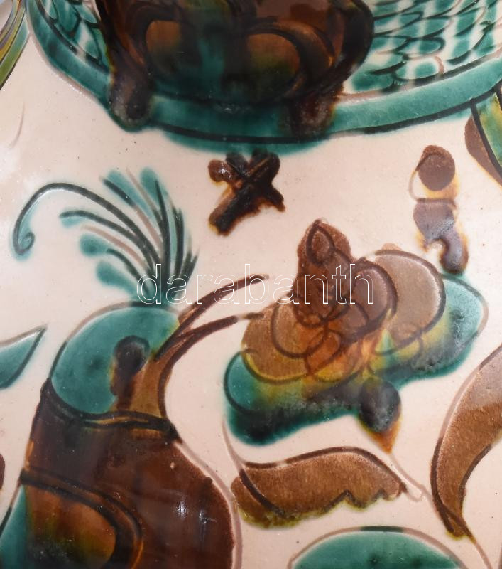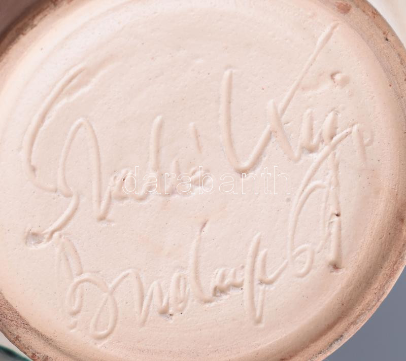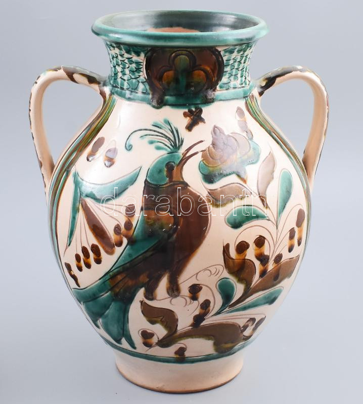 Leírás: Szabó Kinga: Madaras kétfüles korsó. Jelzett, kis kopással, m: 26 cm
