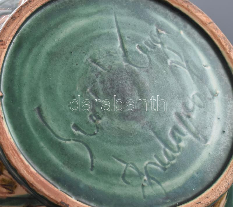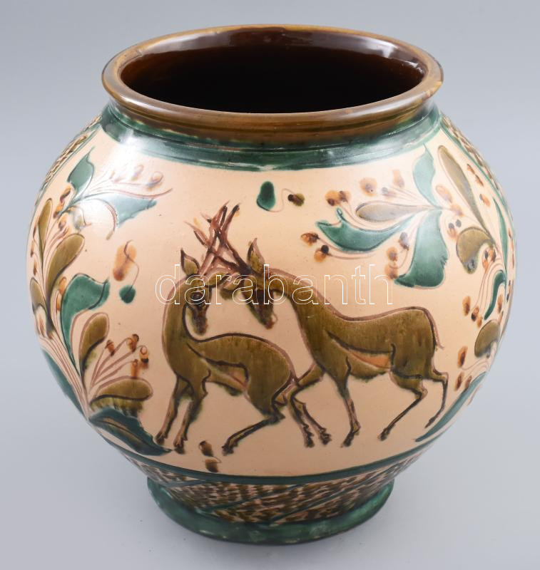 Leírás: Szabó Kinga: Váza őzekkel. Jelzett, kis kopással, m: 22 cm
