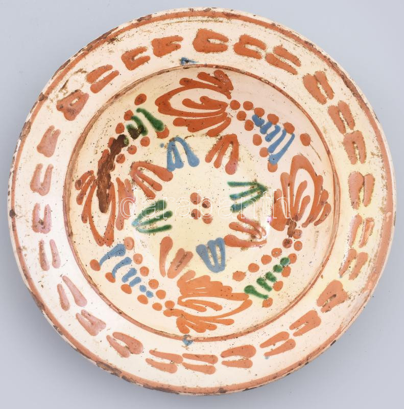 Leírás: Tányér. 19. sz. vége, Mezőség, kis sérülésekkel, d: 20,5 cm