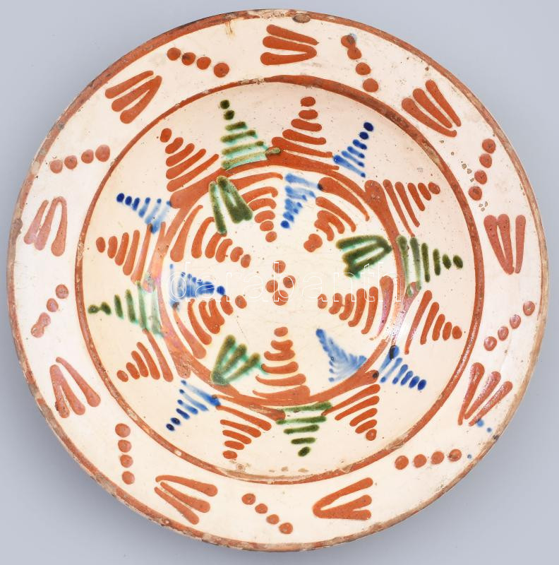 Leírás: Tányér. 19. sz. vége, Mezőség, kis sérülésekkel, d: 20,5 cm