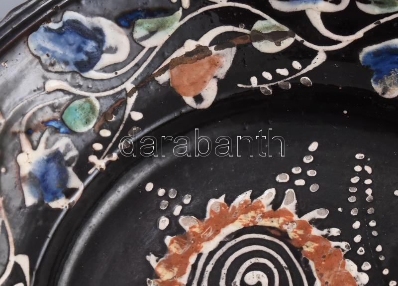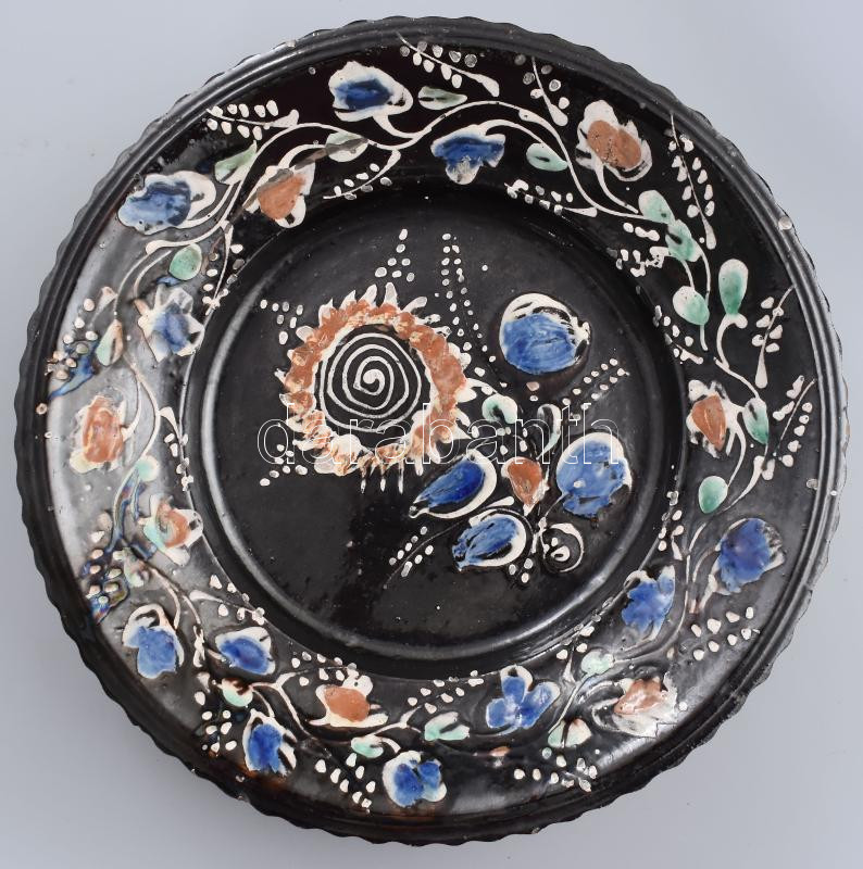 Leírás: Tányér. Torda, 19. sz. második fele, mázas kerámia, kopott, d: 31 cm