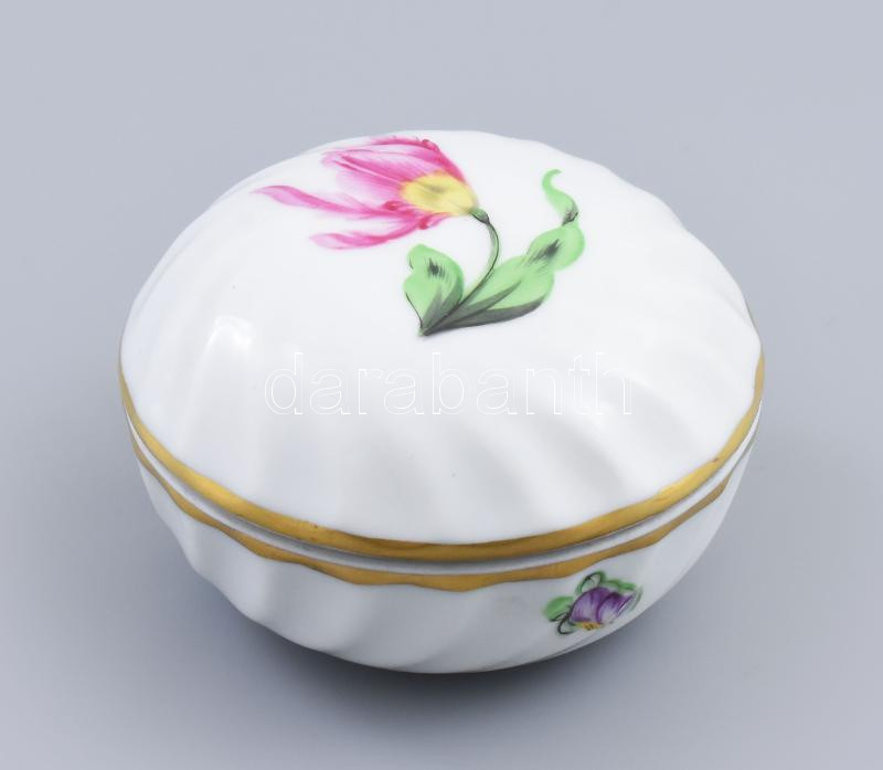 Herendi virág mintás dobozka. Kézzel festett, jelzett, hibátlan d: 6 c... https://www.darabanth.com/hu/457-Gyorsarveres/457.0/Porcelan-keramia-uveg/Porcelan~500008/Herendi-virag-mintas-dobozka-Kezzel-festett-jelzett-hibatlan-d-6-cm~II3052182