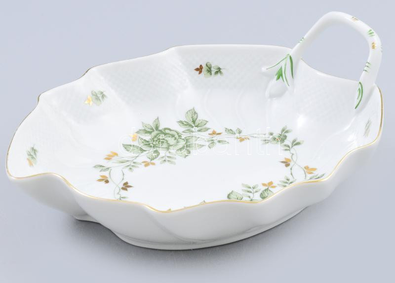 Leírás: Hollóházi Erika mintás levél alakú kínáló, jelzett, hibátlan, h: 22 cm