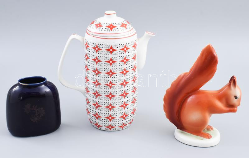 Leírás: Hollóházi mókus + retro kiöntő + kisváza, utóbbin pattanással, jelzett