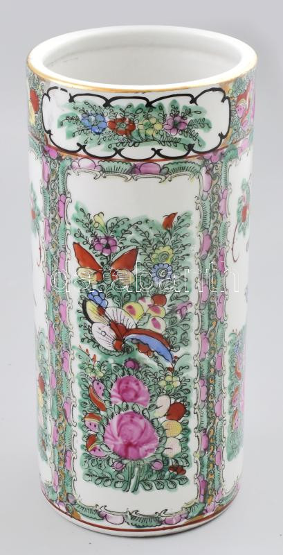 Leírás: Kínai famille rose porcelán váza, XX. sz. eleje, jelzett, minimális kopottsággal, d: 12,5 cm, m: 26,5 cm