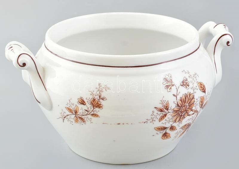 Leírás: Régi prcelán ragus tál, fedő nélkül, matricás porcelán, kopott, d: 26 cm