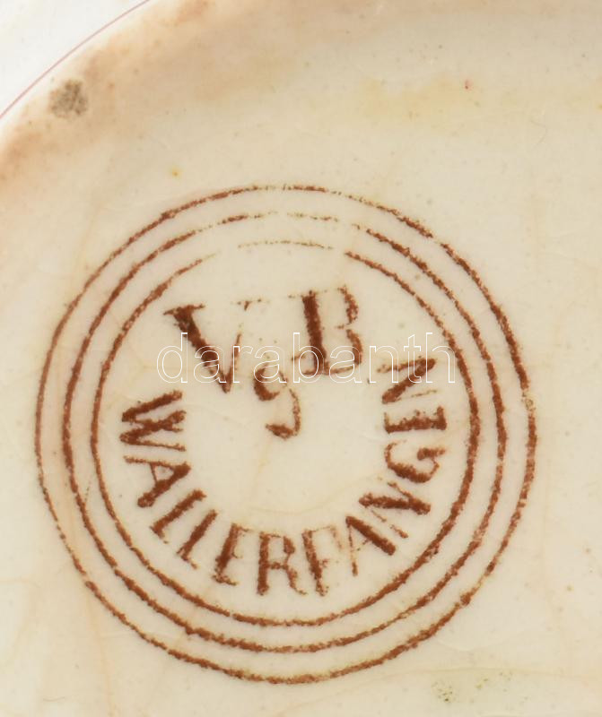Leírás: V&B kínai mintás fajansz teáscsészék aljjal 3 db. Kézzel festett, jelzett, kopással, mázrepedéssel. Egyik fül letört