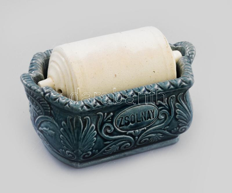 Leírás: Zsolnay bélyeghenger. XIX. sz., oldalán jelzett: ZSOLNAY felirat. Kis kopással, 9,5x6x6 cm