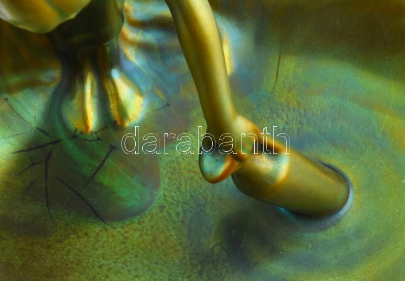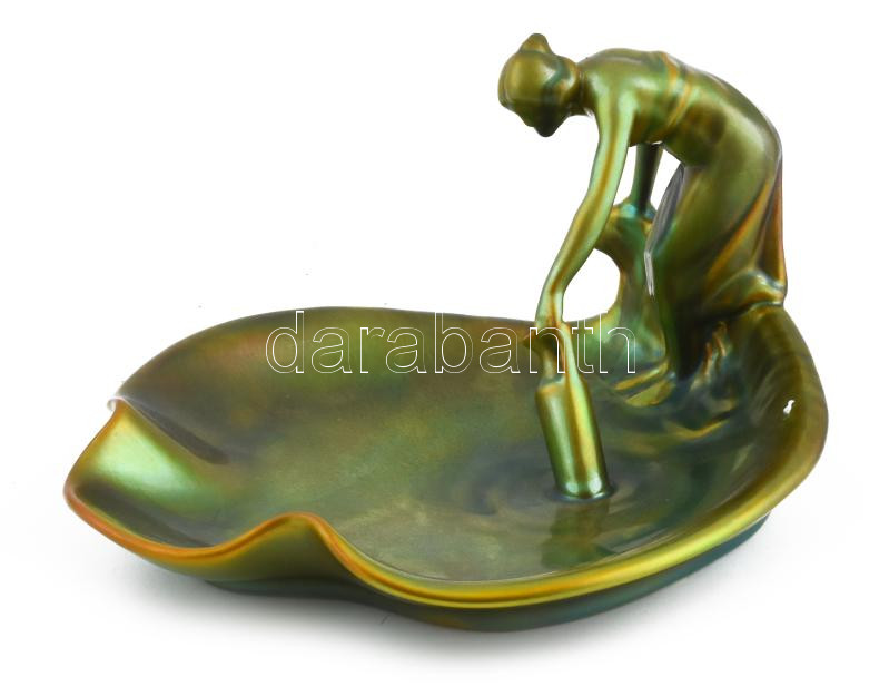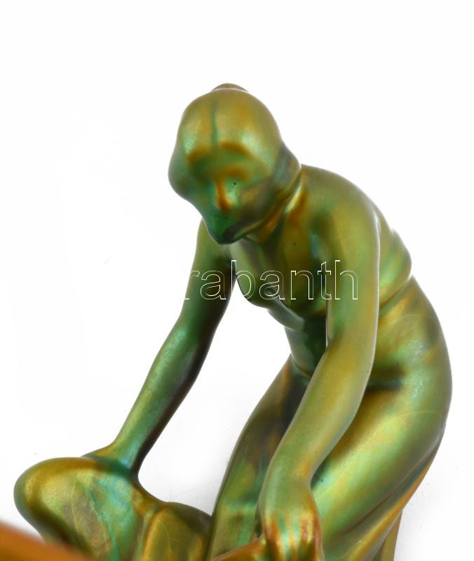 Zsolnay névjegykártyatartó vizet merítő nő alakkal. Eozin mázakkal borított porcelánfajansz. Jelzett, hibátlan, 29,5x25,5x15 cm, ilyen méretben kuriózum!