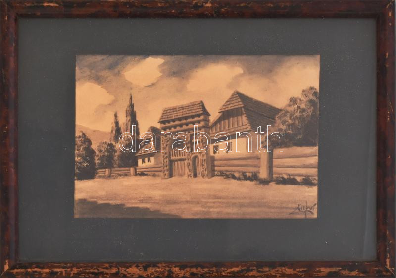 Zombor (?) jelzéssel: Erdélyi falurészlet. Vegyes technika, papír, üve...