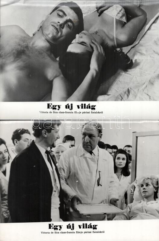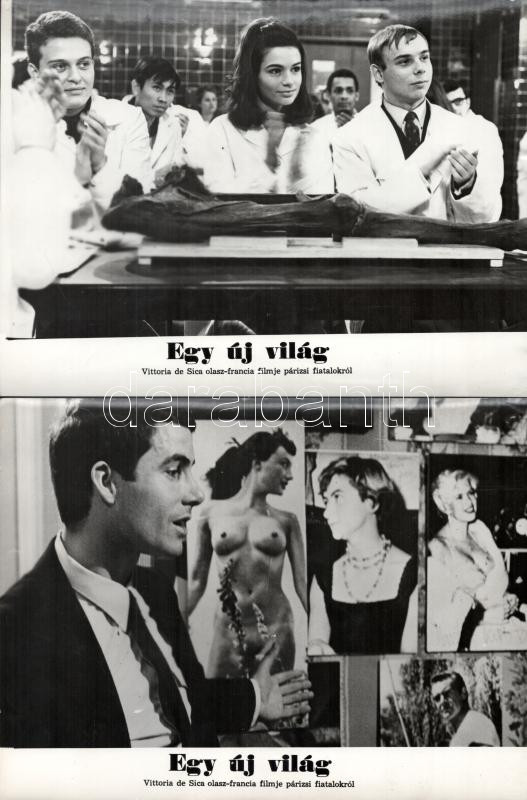 cca 1966 ,,Egy új világ" című olasz - francia film jelenetei és szereplői, 16 db vintage produkciós filmfotó (vitrinfotó, lobbyfotó) ezüst zselatinos fotópapíron, a használatból eredő (esetleges) kisebb hibákkal, 18x24 cm