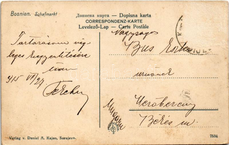 1915 Sarajevo, Bosnien Schafmarkt. Verlag v. Daniel A. Kajon / Bosnian... https://www.darabanth.com/hu/458-Gyorsarveres/458.0/Kepeslapok/Bosznia-Hercegovina~2000020/1915-Sarajevo-Bosnien-Schafmarkt-Verlag-v-Daniel-A-Kajon-Bosnian-sheep-market-Rb~II3036465