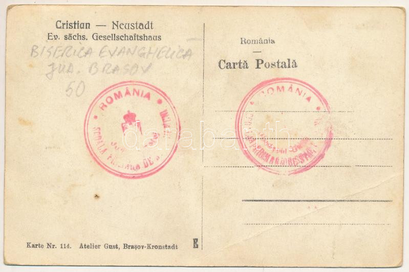 Keresztényfalva, Neustadt-Burzenland bei Kronstadt, Cristian; Ev. sächs. Gesellschaftshaus / Szász evangélikus közösségi ház, belső. Atelier Gust / Saxon Lutheran community center, interior (fa)