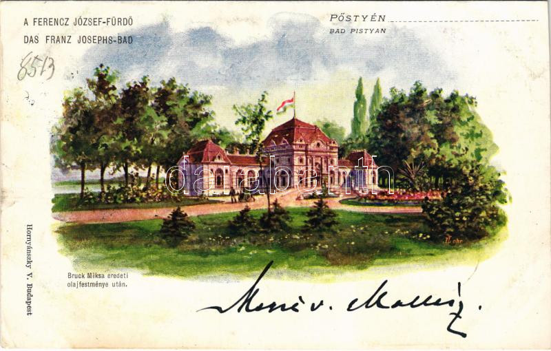 1900 Pöstyén, Piestany; Ferenc József fürdő / Das Franz Josephs-Bad / ... https://www.darabanth.com/hu/458-Gyorsarveres/458.0/Kepeslapok/Felvidek~2000008/1900-Postyen-Piestany-Ferenc-Jozsef-furdo-Das-Franz-Josephs-Bad-spa-bathhouse-s-Bruck~II3064951