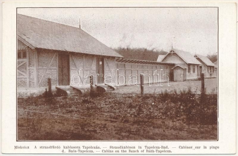 Leírás: Miskolctapolca, Görömbölytapolca, Görömbölyi-Tapolca, Tapolca (Miskolc); A strandfürdő kabinsora. Felsőmagyarországi Idegenforgalmi Szövetség kiadása