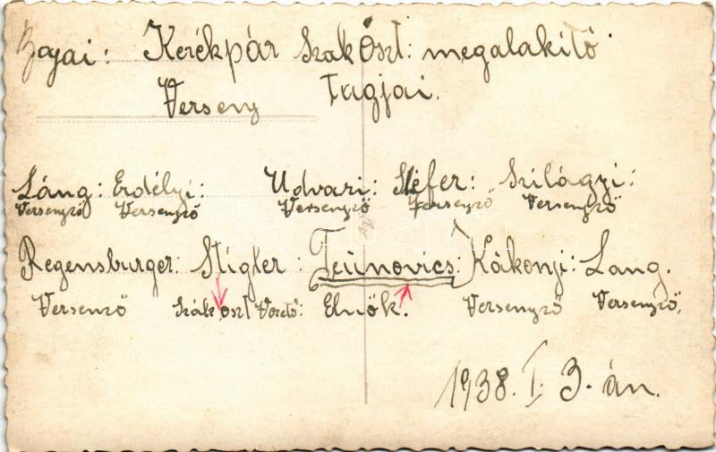 1938 Békéscsaba, BMTE kerékpáros szakosztály: Boyai Kerékpár Szakosztá... https://www.darabanth.com/hu/458-Gyorsarveres/458.0/Kepeslapok/Sport~2000077/1938-Bekescsaba-BMTE-kerekparos-szakosztaly-Boyai-Kerekpar-Szakosztaly-megalakito-verseny-tagjai~II3068683