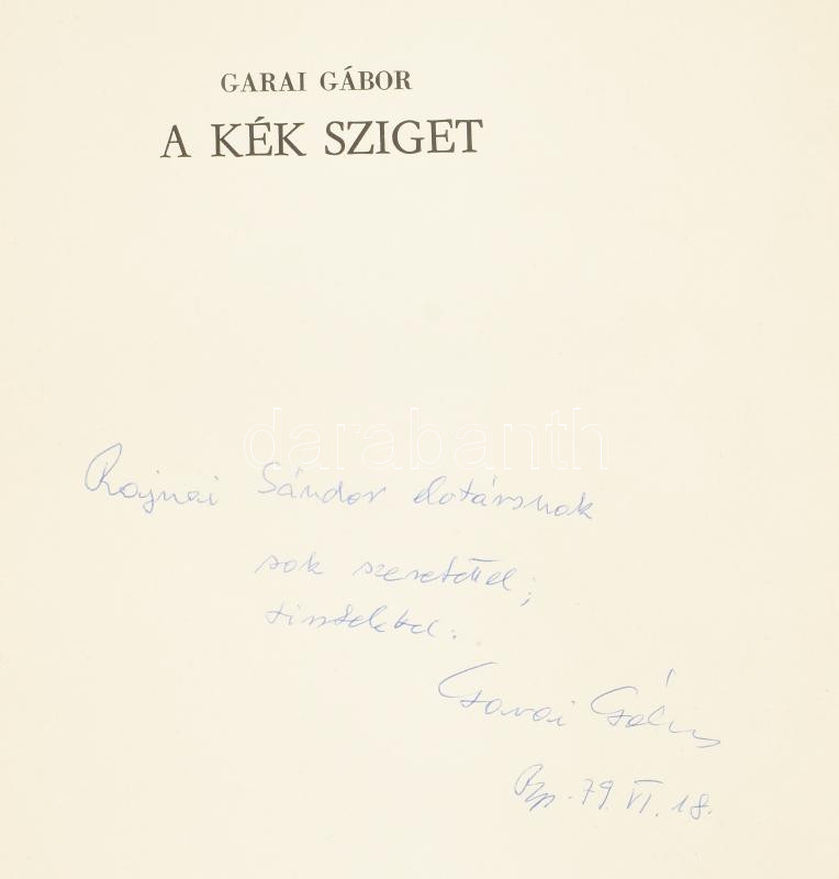 Garai Gábor: A kék sziget. A szerző, Garai Gábor (1929-1987) által DEIKÁLT és számozott példány (75/250). Békéscsaba, 1979, Megyei Könyvtár házinyomdája. Szántó Piroska illusztrációval. Kiadói papírkötés