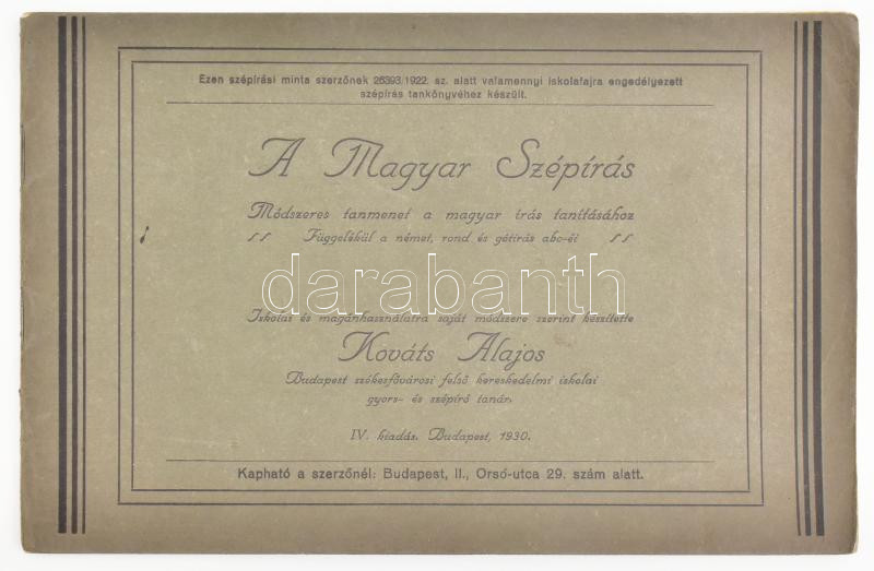https://www.darabanth.com/hu/458-Gyorsarveres/458.0/Konyvek/Konyvek-Egyeb-ritkasagok~1500034/Kovats-Alajos-A-magyar-szepiras-Modszeres-tanmenet-a-magyar-iras-tanitasahoz-Fuggelekul-a~II3067754
