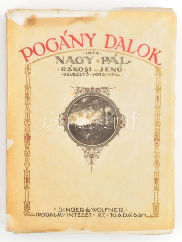 Nagy Pál: Pogány dalok. Rákosi Jenő bevezető soraival. Bp., 1926, Singer és Wolfner. Kiadói papírkötés, sérült borítóval, viseltes lapszélekkel, műanyag borítással. A könyv előlapján aláírva 1942 karácsonyán. A szerző testvérének? ajándékozó soraival.