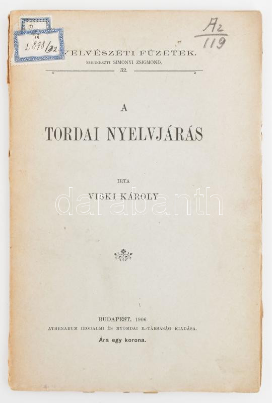 Viski Károly: A tordai nyelvjárás. Bp., 1906. Athenaeum. Kiadói papírk... https://www.darabanth.com/hu/458-Gyorsarveres/458.0/Konyvek/Konyvek-Tarsadalomtudomany~1500025/Viski-Karoly-A-tordai-nyelvjaras-Bp-1906-Athenaeum-Kiadoi-papirkotes-enyhen-serult~II3066438