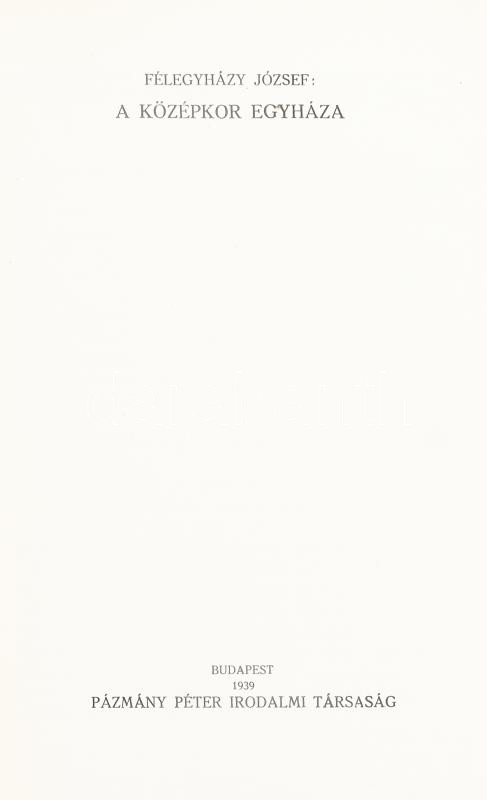 Félegyházy József: A középkor egyháza. A keresztény egyház története IV. köt. Szerk.: Bangha Béla és Ijjas Antal. Bp., 1939, Pázmány Péter Irodalmi Társaság. Egészoldalas fekete-fehér képekkel illusztrálva. Kiadói egészvászon-kötés