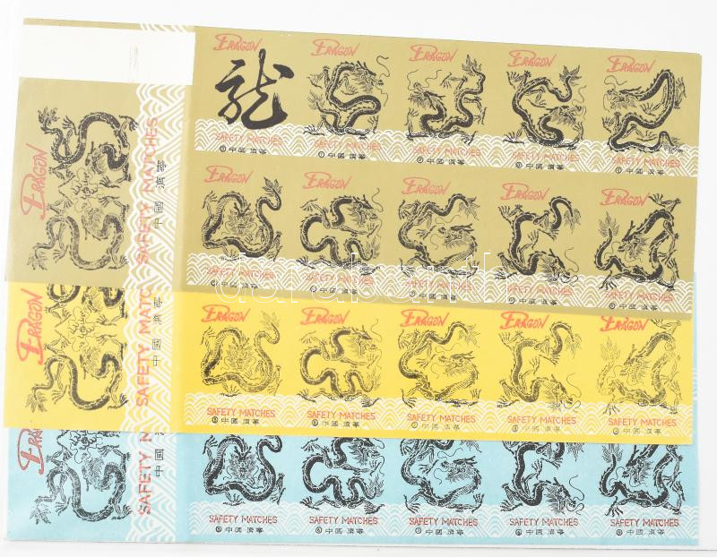 Leírás: Kínai sárkányok gyufacímke, 3 ívben, különböző színekben