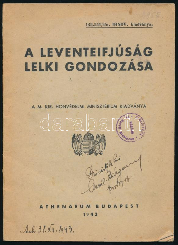 1943 A Leventeifjúság lelkigondozása. 20 p. https://www.darabanth.com/hu/458-Gyorsarveres/458.0/Mutargy-papirregiseg-egyeb/Militaria~1500008/1943-A-Leventeifjusag-lelkigondozasa-20-p~II3066835
