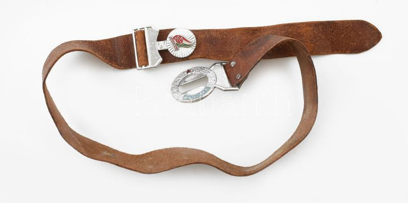 Úttörő öv, festett alumínium csattal, kopással, h: 78 cm https://www.darabanth.com/hu/458-Gyorsarveres/458.0/Mutargy-papirregiseg-egyeb/Militaria~1500008/Uttoro-ov-festett-aluminium-csattal-kopassal-h-78-cm~II3048472