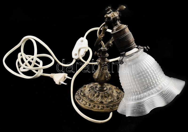 Leírás: Szecessziós bronz falilámpa, búrával, kopással, cca 22x25 cm