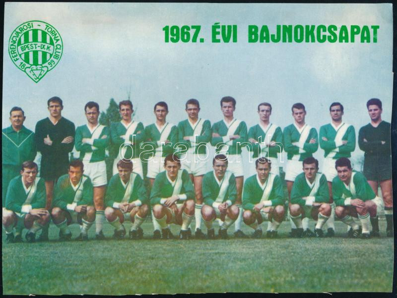 1967 A Ferencváros (Fradi) 1967. évi bajnokcsapata, fotónyomat, vágott...