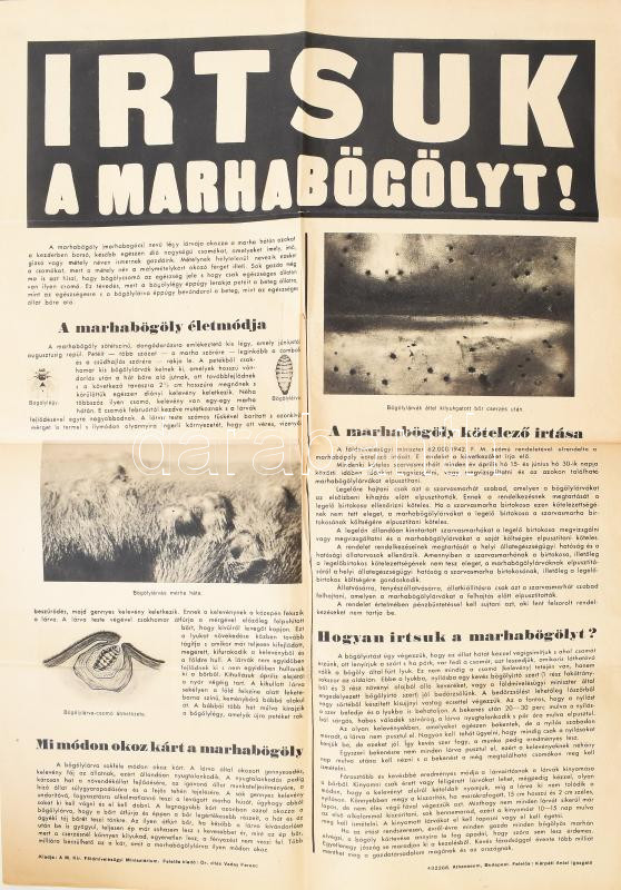Leírás: cca 1930 Irtsuk a marhaböglyöt képes plakát 42x60 cm