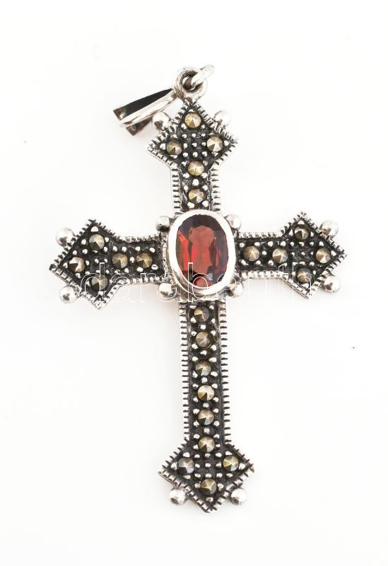Leírás: Ezüst(Ag) kövekkel díszített kereszt medál, jelzett, 5×3 cm, bruttó: 3,9 g