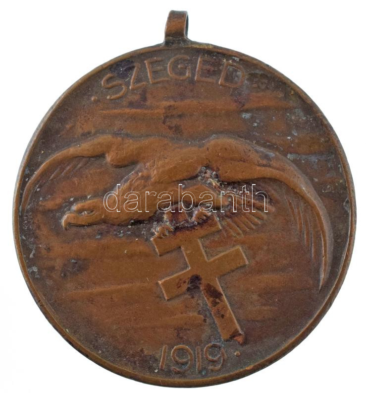 Leírás: 1919. "Szeged 1919 / M. Kir. Egyesített Csendőriskolák - Sportverseny érem" bronz díjérem függesztőkarika fülell, nélkül (31mm) T:XF patina, ph.