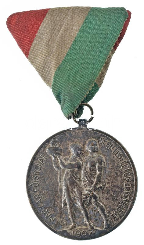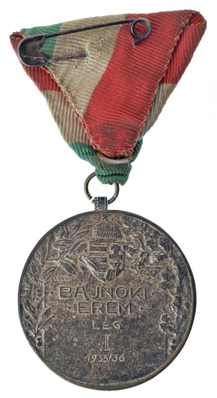 Leírás: Sződy Szilárd (1878-1939) 1938. "Magyar Főiskolai Sportegyletek Egyesülése - 1907 / Bajnoki érem" kétoldalas ezüstözött bronz díjérem, "LUDVIG" gyártói jelzéssel, "Lég II 1935/36" gravírozással, mellszalagon (40mm) T:XF