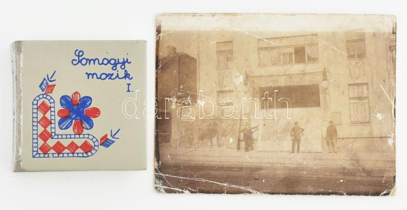 Leírás: cca 1900 Kaposvár Apolló mozi épülete, korabeli feliratozott fotó 9x12 cm + Somogyi mozik I. minikönyv