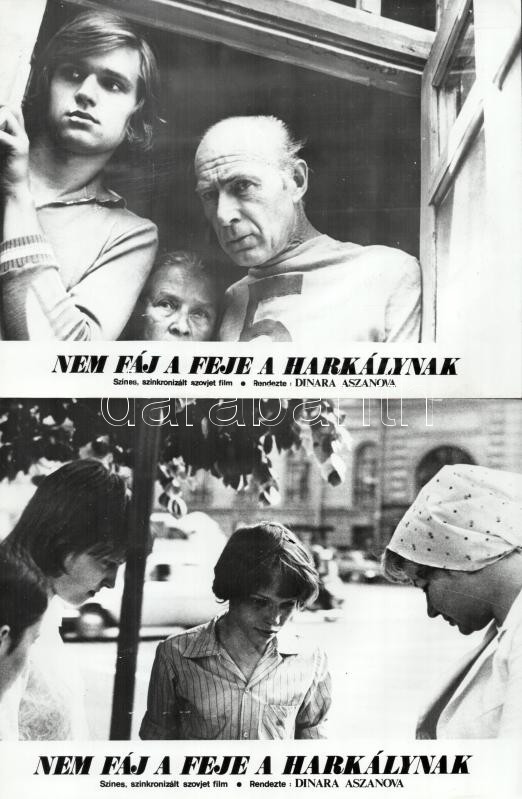 cca 1975 ,,Nem fáj a feje a harkálynak" című szovjet film jelenetei és szereplői, 9 db vintage produkciós filmfotó (vitrinfotó, lobbyfotó) ezüst zselatinos fotópapíron, a használatból eredő (esetleges) kisebb hibákkal, 18x24 cm