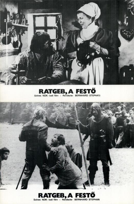 cca 1978 ,,Ratgeb, a festÅ‘" cÃmű NDK-beli film jelenetei és szereplÅ‘i, 9 db produkciós filmfotó (vitrinfotó, lobbyfotó) nyomdatechnikával sokszorosÃtva kartonpapÃrra, egyoldalas nyomással, a használatból eredÅ‘ (esetleges) kisebb hibákkal, 18x24 cm cm