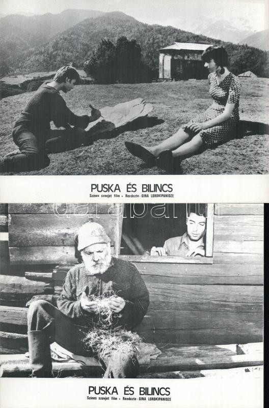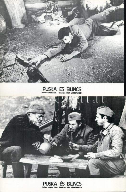 cca 1979 ,,Puska és bilincs" cÃmű szovjet film jelenetei és szereplÅ‘i, 8 db produkciós filmfotó (vitrinfotó, lobbyfotó) nyomdatechnikával sokszorosÃtva kartonpapÃrra, egyoldalas nyomással, a használatból eredÅ‘ (esetleges) kisebb hibákkal, 18x24 cm