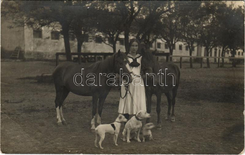 Leírás: 1914 Sankt Pölten, lady with horses and dogs. photo (EB)