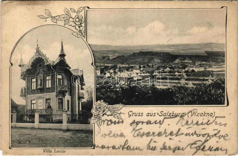 Leírás: 1906 Vízakna, Salzburg, Ocna Sibiului; Villa Louise, látkép. Karl Graef kiadása / villa, spa. Art Nouveau, floral (EM)
