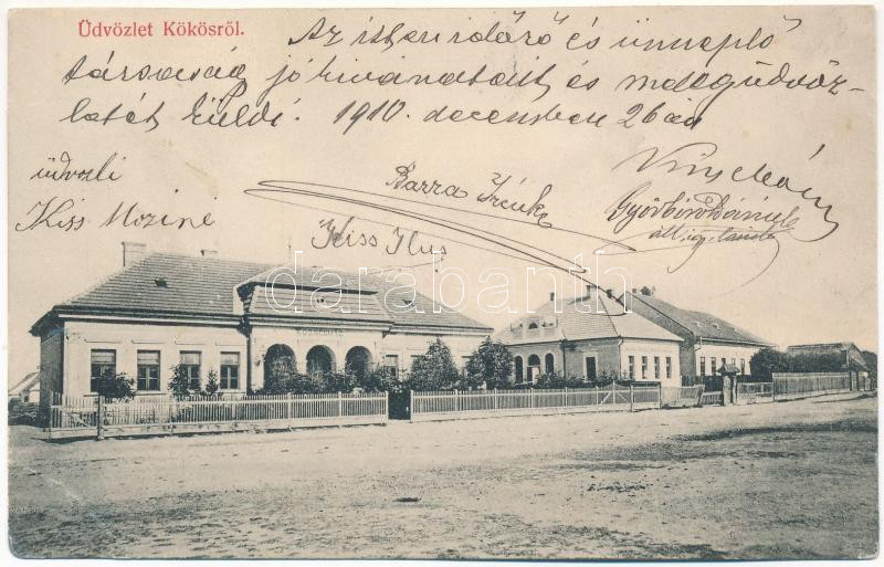 Leírás: Kökös, Blauendorf, Chichis (Kovászna); községháza / primaria / town hall (EK) + "KÖKÖS POSTAI ÜGYN."