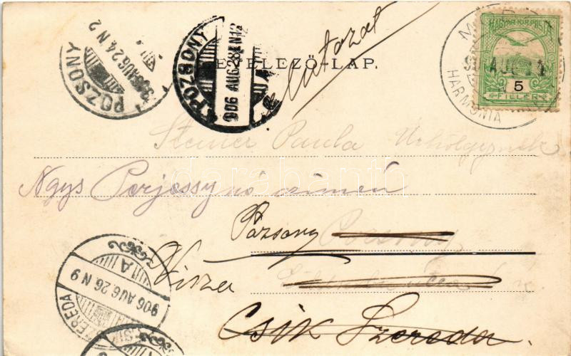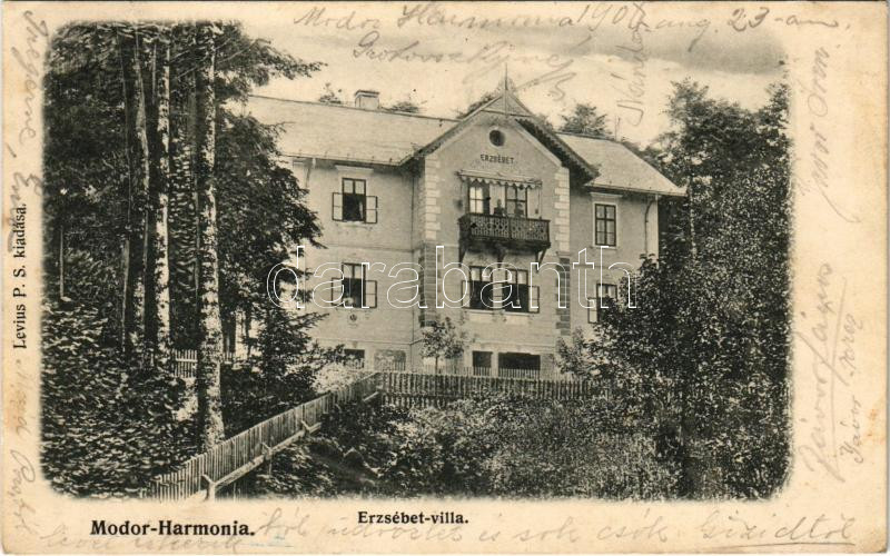 1906 Modor-Harmónia, Modern-Harmonie, Modra; Erzsébet villa. Levius P.... https://www.darabanth.com/hu/459-Gyorsarveres/459.0/Kepeslapok/Felvidek~1500007/1906-Modor-Harmonia-Modern-Harmonie-Modra-Erzsebet-villa-Levius-P-S-kiadasa-villa-fl~II3074057