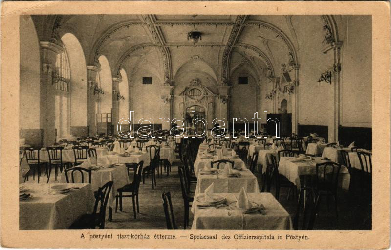 Pöstyén, Pistyan, Piestany; Tiszti kórház étterem belsője / Speisesaal... https://www.darabanth.com/hu/459-Gyorsarveres/459.0/Kepeslapok/Felvidek~1500007/Postyen-Pistyan-Piestany-Tiszti-korhaz-etterem-belsoje-Speisesaal-des-Offiziersspitals-~II3077605
